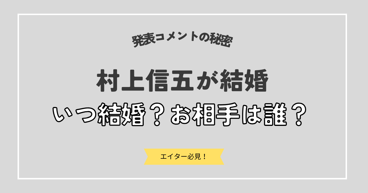 本記事では、村上くんの結婚発表はいつだったのか、結婚相手は誰なのか、そして話題となった結婚発表全文はいつ出たのか。